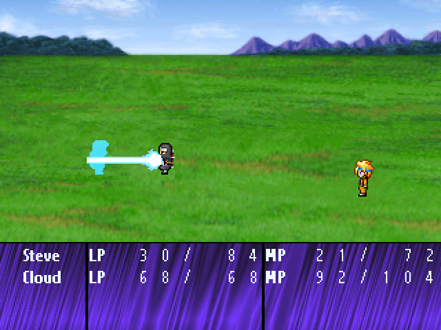 Obwohl das Mapdesign stellenweise ein wenig zu Wünschen übrig lässt, wirkt das Spiel ingesamt alles andere als schluderhaft produziert. Diverse Details und Effekte, wie auch graphische Edits, z.B. an einigen Chipsets, geben den Umgebungen das gewisse Etwas. Der größte Pluspunkt ist allerdings das selbst gebastelte Kampfsystem, welches die interessante Eigenschaft besitzt, dass einzelne besiegte Gegner sofort Erfahrungspunkte und Gold abwerfen, es währenddessen zu Level-Ups kommen kann und die daraus resultierungen Stat-Erhöhungen im selben Kampf schon zum Tragen kommen und ebenfalls neu erlernte Techniken darin schon verwendet werden können. In den meisten anderen Spielen, darunter auch den Kommerziellen, findet dergleichen immer erst nach dem Kampf statt, von daher hat mich dieses Zusatzfeature schon ziemlich beeindruckt. Inhaltlich scheint das Spiel, was sicherlich auch an der Wahl des Designs und den Charakteren liegt, weniger mit Dragon Ball zu tun zu haben, als der Titel vermuten lässt. Vielmehr als das erinnert die Spielwelt an die eines für Makerspiele typischen Adventure RPGs, wenn man von den wenigen Begegnungen mit Dragon Ball Charakteren einmal absieht.