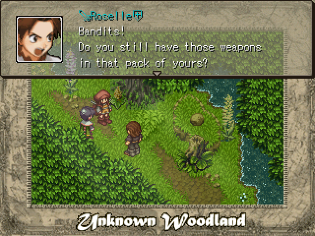 Rose Chronicles follows Roselle as she goes 7 years into the past to prevent a tragedy from occurring. The game plays similar to a 2005 GBA game: Riviera. In which you are not able to move a character around the map, but rather drag a cursor around clicking on nodes to advance the story. In-between all of that are some battles done in RM2K3’s DBS which I might add contain a lot of neat details. The background interchanges between edited chipsets meant for top-down RPGs and backgrounds from Legend of Mana. It somehow comes together cohesively.