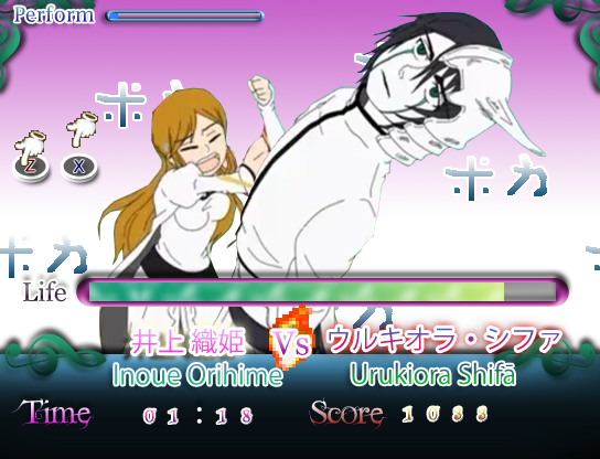 Orihime beating Urukiora. (The Game)... Urukiora?!?... Orihime?!? If you don't know about Bleach, Please click the link below for more information.