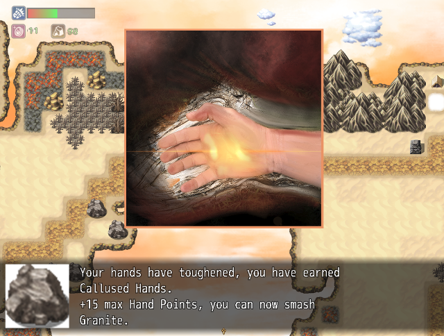 Your main tool is your hands. They will become progressively tougher and stronger as you smash your way forward, enabling you to pulverize harder stones. Combined with your wits, they will help you complete quests, and unlock new areas and mysteries.