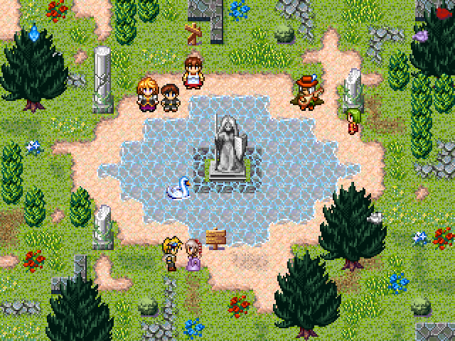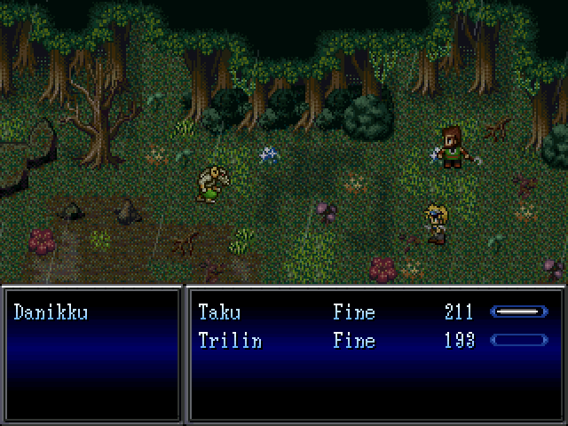 Trilin is a lecherous adventure on the run after he went to bed with the daughter of the local lord, so he goes to meed Taku, a man who raises chocobos. One of these can take him far from this country, anyway after going hunting the chocobo breeder discovers that a group of man has kidnapped his family and his chocobos! Trilin and a Moogle will join him!