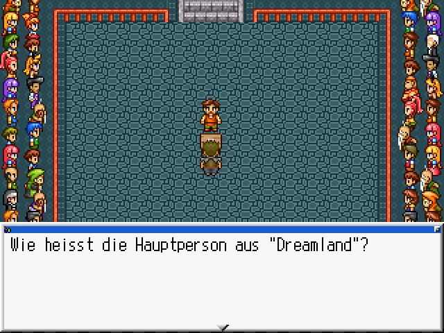 Man ist in einer Quiz Show und muss verschiedene Fragen über Rpgmaker 2000 Spiele beantworten.