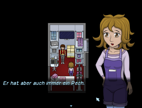 Die Steuerung entspricht makerüblichen Standards. Daneben gibt es die Möglichkeit über die Taste “A” Gegenstände aus dem Inventar miteinander zu kombinieren. Seit dieser Version gibt es auch die Möglichkeit sich mittels der Hilfetaste “Q” wichtige Objekte auf der Karte anzeigen zu lassen. Ebenfalls neu ist die Maussteuerung. Bewegungen und Interaktionen werden über die linke Maustaste gesteuert; die rechte Maustaste ruft das Menü auf und die mittlere Maustaste entspricht der Taste “A”. Objekte mit denen interagiert werden kann, sollten sich (in den meisten Fällen) durch einen Farbwechsel des Mauszeigers bemerkbar machen. Wer sich an der - stellenweise noch etwas experimentellen - Maussteuerung stören sollte, kann allerdings genauso gut darauf verzichten.