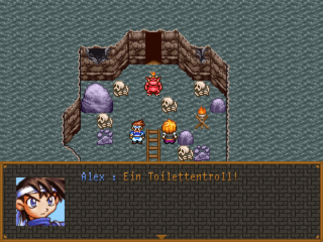 In dem Fungame 'Alex' von Kelven müsst ihr als Alex der Held losziehen und das heilige Schwert finden um das Böse zu besiegen. Das Spiel spricht vor allem die billigen Szenen von n00b Games an. Alles in allem ist Alex ein sehr witziges Spiel. Ein absolutes MUST HAVE unter den RPG Maker Spielen.