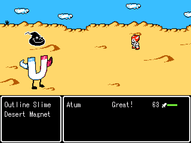 Ghosts of Aliens is a short(Probably 5 hours) role playing rpg game that follows the adventures of Atum and an old man named Gwaldin, and later 3 other heroes. On October 1st, 1963, an alien ship crashes on the planet of Appalathia, in a desert near the town of Roswell. For 5 years, the alien inside this ship lives off of rations and eventually dies becoming the ghost of an alien. Gwaldin, the old man, tells of a prophecy that a hero would crash from the sky down to the world of Appalathia and defeat the 5 Doom Beasts that are scattered across the world.