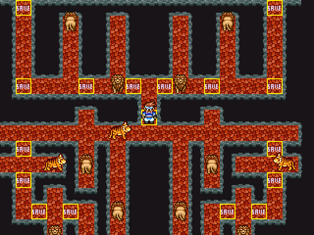 1 Tempel: Versuche die Treppe auf der anderen Seite der Höhle zu erreichen, ohne dabei von einem Löwen gefressen zu werden.